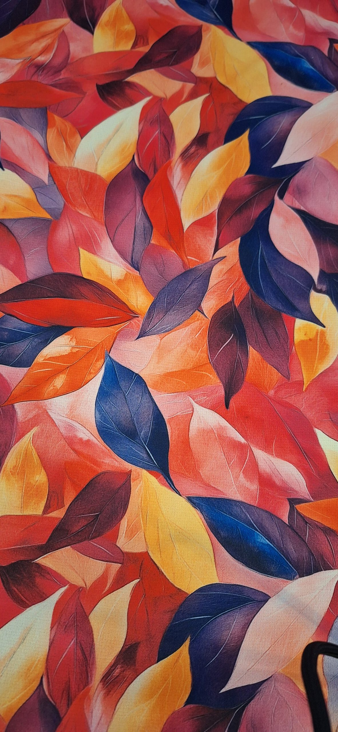 Dieser Alpenfleece mit einer glatten Außenseite und einer weich aufgerauten Innenseite, die Wärme und Weichheit bietet, eignet sich besonders gut für warme Kleidung wie Pullover, Hoodies, Kleider, Röcke oder Jogginghosen, insbesondere für die kältere Jahreszeit. Mit dem farbenfrohen Blättermuster lässt der Stoff jeden Wintertag heller werden.
