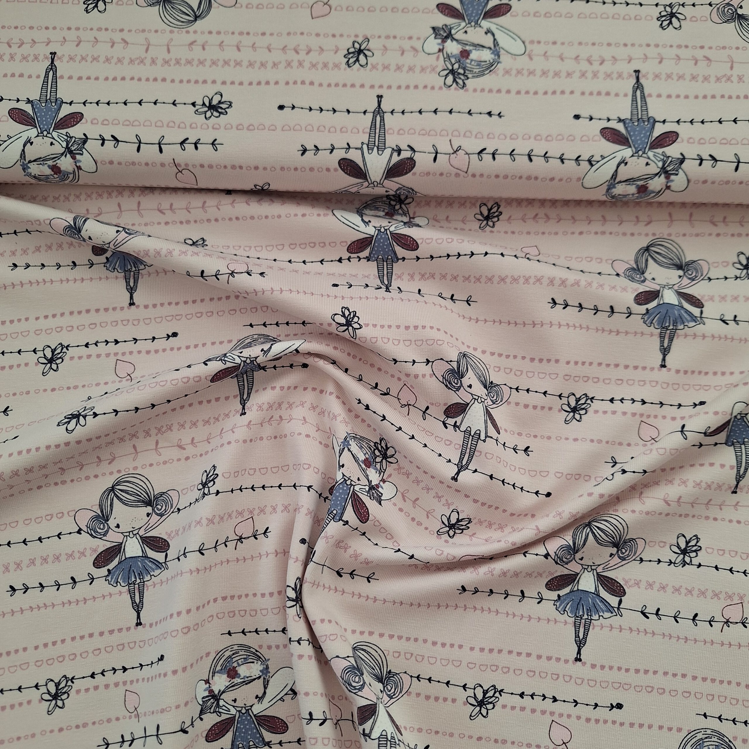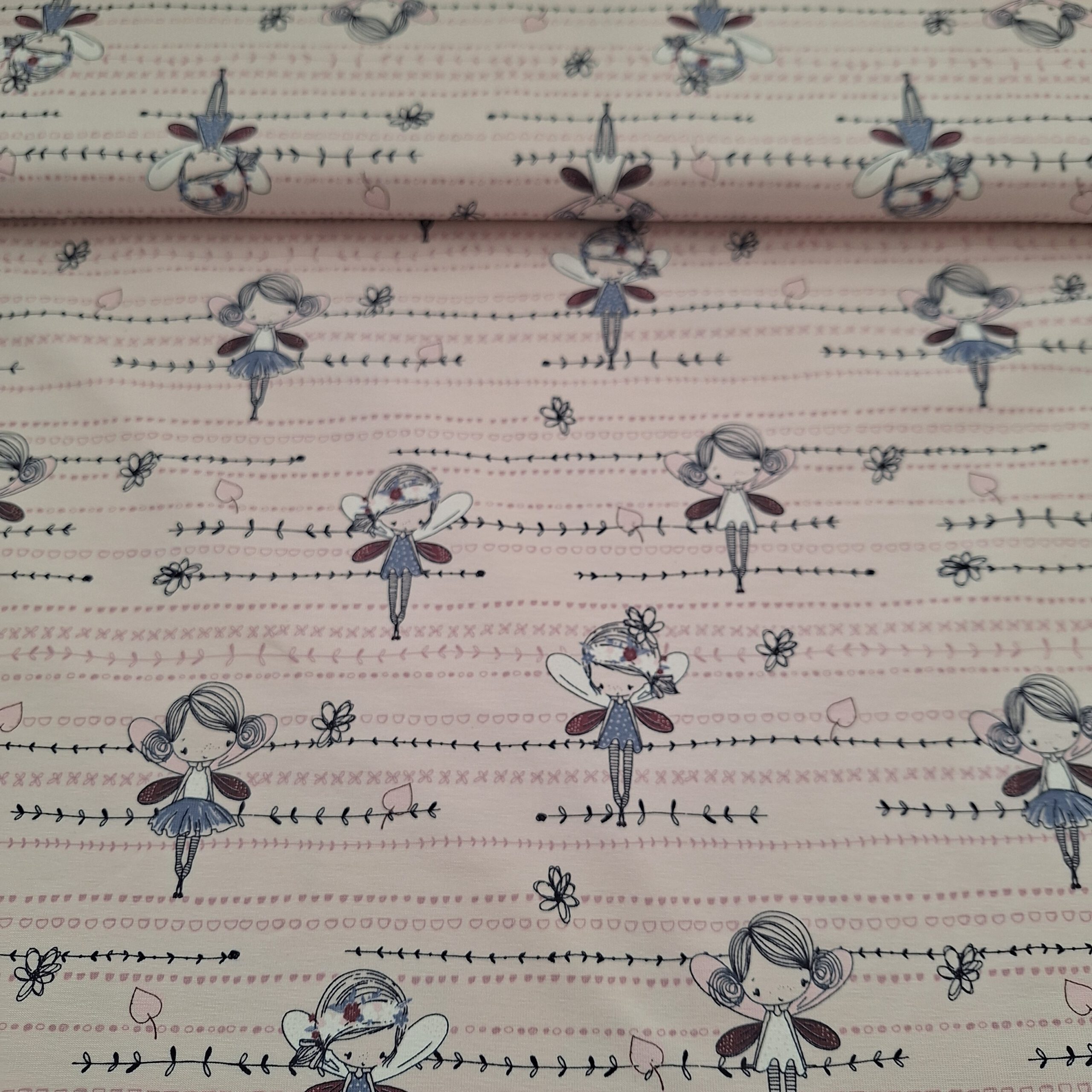 Baumwolljersey hellrosa mit Feen